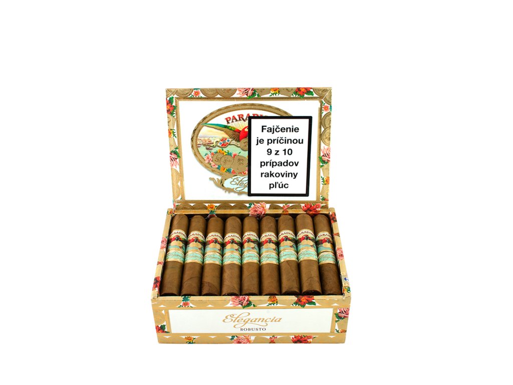 Táto nádherná stredne plná cigara začína korenisto a potom prechádza do príjemného drevitého a krémového profilu. Jej hodvábne hladký krycí list Ekvádorského odtieňa Connecticut zakrýva nikaragujský viazací list a výplň. Ručne vyrobené v Nikarague od My Father Cigars. Paradiso Elegancia Robusto získalo hodnotenie 91 od Cigar Aficionado.