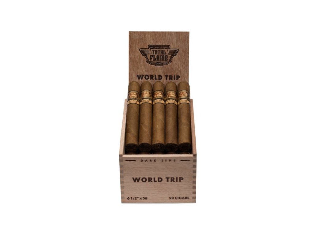 Cigara Total Flame World Trip je vlajkovou ľoďou línie je Bright line. Všetky cigary tejto línie sú vyrobené z najlepších tabakov sveta z krajín, ktoré sú v špičkou v jeho pestovaní - Nikaragua, Ekvádor a Dominikánska republika. Príjemne korenisté tóny spolu so sladkými smotanovými odtienkami očaria každého milovníka jemnejších cigár plnej chuti.